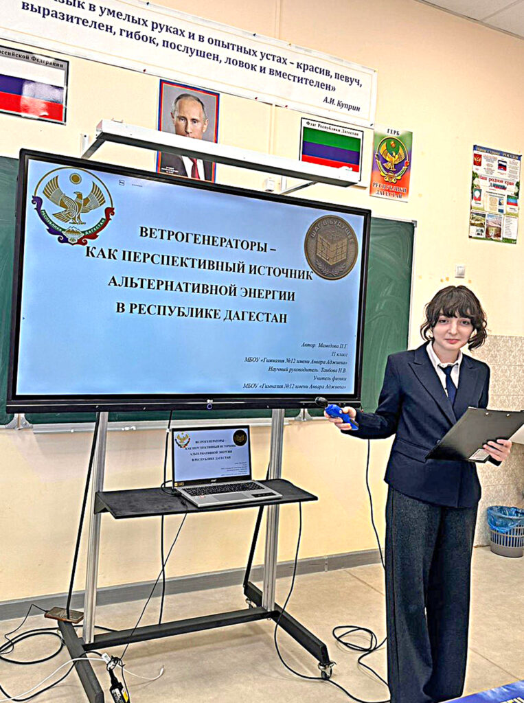 «Аьхиримжи йисари Дагъустандиъ аквар кутIушвру дюшюшар гизаф шулайивализ лигну, му аьгьвалат дигиш апIбан бадали, фицдар рякъяр агуз шулуш, ахтармишар гъахуз хъюгъюнза. Хайлин ахтармишарин кьяляхъ, микIлахъди энергия гьясил апIуб региондиз варитIан хас шлубдин гъаври гъахьунзу. Гьаддиз узуна 11-пи классдиъ урхурайи Пери, Тарки дагъдиина душну, душв’ин микIлахъди либхру электростанция диври гъабхьиш кIури, хъиврайи микI хусуси алатдихъди ахтармиш апIуз чалашмиш гъахьунча. Саки йисандин арайиъ духнайи ахтармишарин натижйириинди, дагъдиин хъиврайи микIран кьувват секундайин арайиъ 11 метртIан артухъ вуйиб аьгъю гъабхьнийчуз. Эгер Тарки-тау таблиин микIлахъди либхру саб генератор дивиш, диди дишлади чан кьувват за дапIну, 2 112,102 кВт энергия тартиб апIуру.