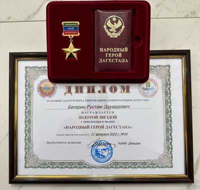Февралин 28-пи йигъан РФ-дин Государствойин Думайин коррупция-йихъди женг гъабхру ва хатIасузвал уьбхру экспертарин комиссияйин вакил, пауэрлифтингдиан хайлин ражари вари Урусатдин ва Европайин чемпион, ихь ватанагьли Рустам Бегериндиз Дагъустандин Халкьдин игитрин Гъизилин хяд тувну. Му заан пешкеш тувбан серенжемар Москва шагьриъ Госдумайин дараматариъ кIули гъушнийи. Рустам Бегериндиз «Дагъустандин Халкьдин игит» кIуру ччвур,...