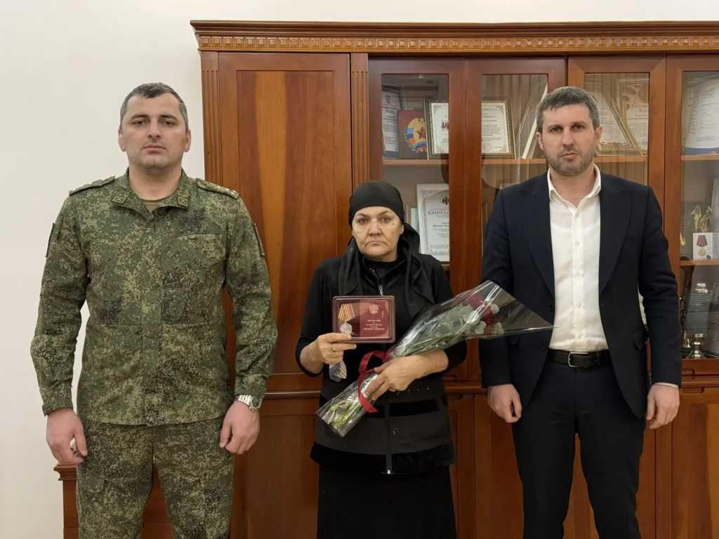 ТАРУМОВСКИЙ РАЙОН, 17 марта – Зори Табасарана. Глава Тарумовского района Василий Джамалов провел церемонию вручения государственной награды матери погибшего участника специальной военной операции Мужаида Мамаева. Указом Президента Российской Федерации Владимира Путина Мужаид Сайпудинович Мамаев посмертно награжден медалью «За храбрость» II степени, сообщили в пресс-службе администрации муниципалитета.