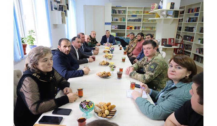В Табасаранском районе в зале модельной библиотеки военнослужащие, прибывшие в отпуск в родные села из зоны СВО, встретились с представителями администрации района.