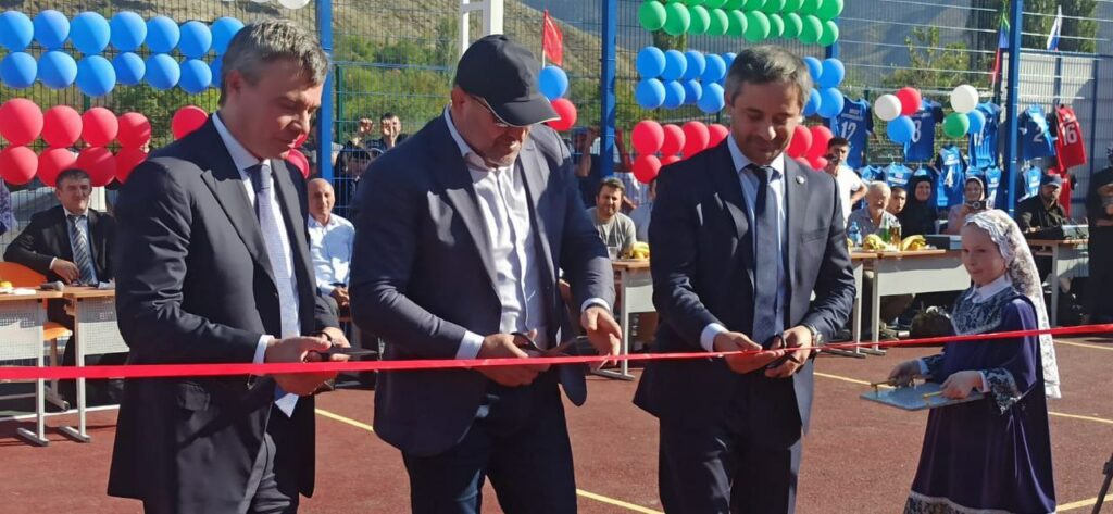 Красную ленту перерезали советник гендиректора Фонда поддержки социальных инициатив «Газпрома» Николай Кузьмичев, министр по физкультуре и спорту РД Сажид Сажидов и глава района Руслан Гамзатов. После этого дети опробовали площадку.