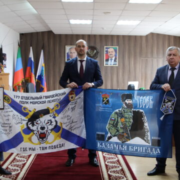 КИЗЛЯР, 26 марта — Зори Табасарана. Мэр Кизляра Иван Лазурков передал в дар музею современной истории города боевые знамена 177-го отдельного гвардейского полка морской пехоты Каспийской флотилии и Казачьей бригады «Терек». Реликвии вручены директору музея Анастасии Родине, сообщили в пресс-службе администрации города.